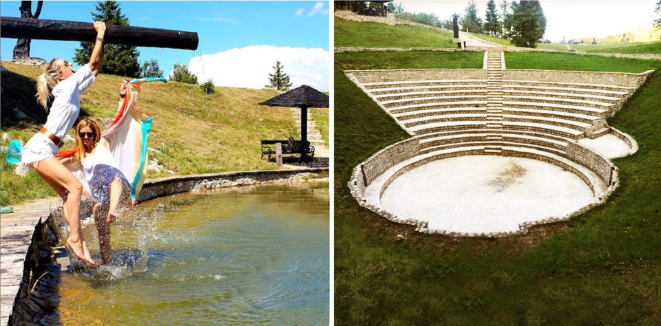 What attracts attention is the fact that the site was created by an intervention in the space of two natural sinkholes in the hill itself, following their topographic-morphological logic and ambient character. In this way, two complementary units were obtained, where a deeper and more dramatic one, is defined by a stone amphitheater of extraordinary acoustics, while the other, wider and more spatially open, was transformed into a lake. It is precisely in the relationship between the two sinkholes and their programming features that the potential direction of the creative design challenge is read, where as a contrast to the amphitheater, which clearly builds harmony of form and function, stands the space around the lake as an open field for spatial-program interventions.
